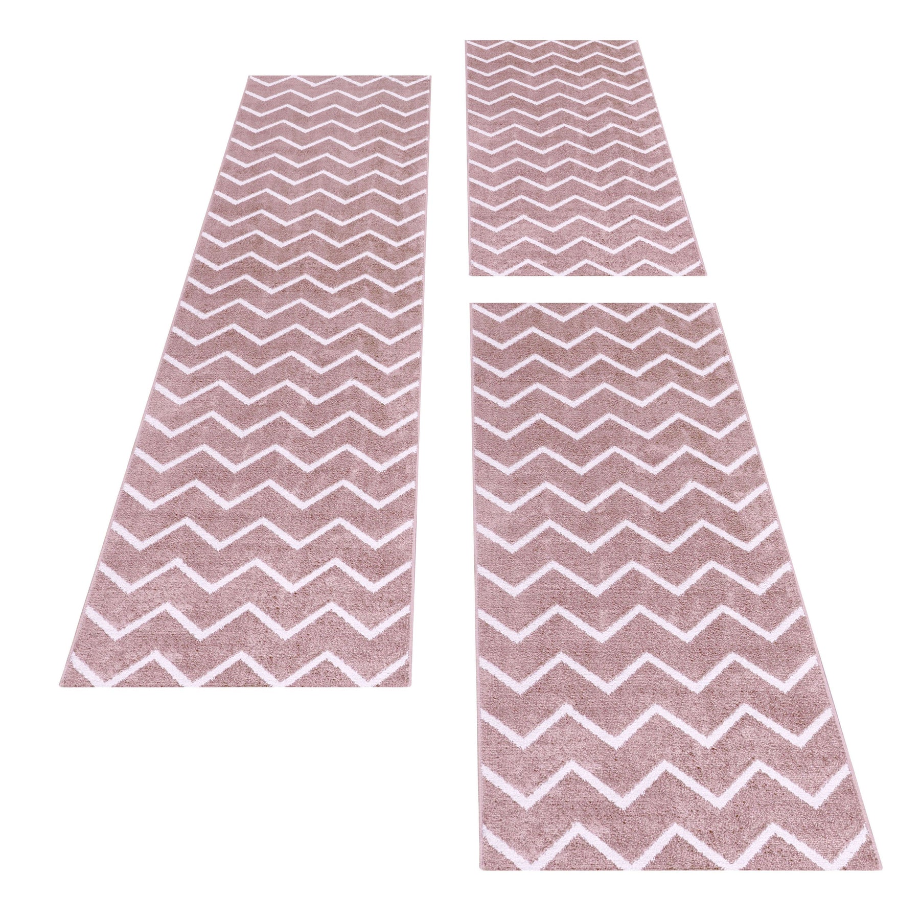 Teppich Läufer Set IROH Schlafzimmer Kurzflor Bettumrandung 3 Teile