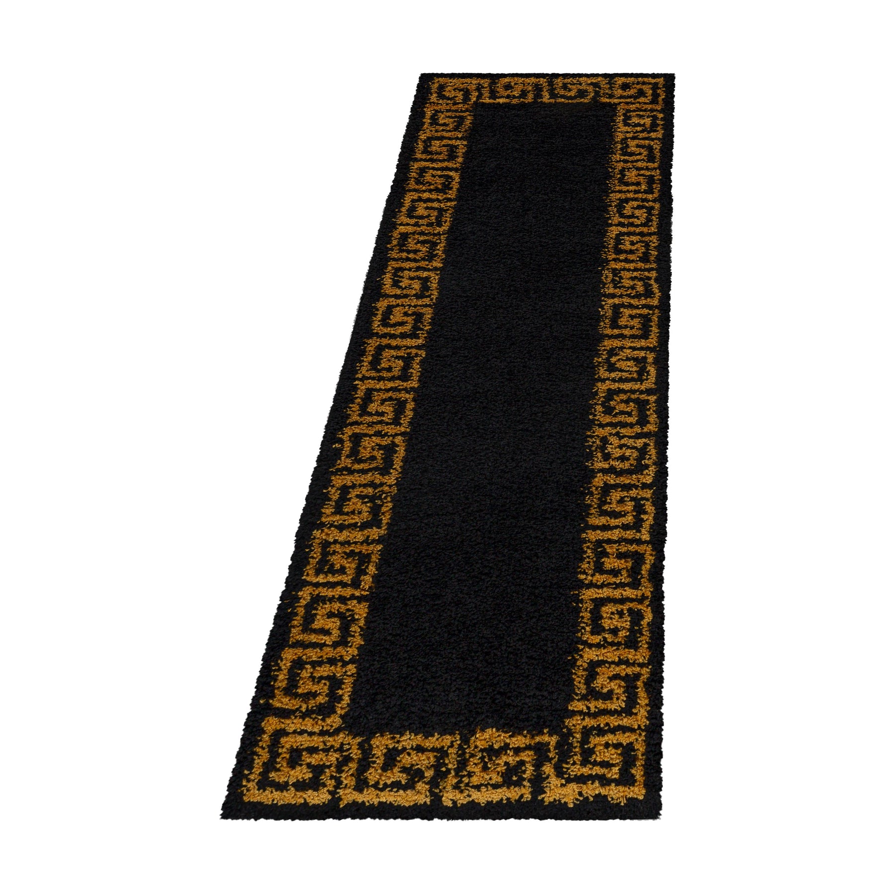 Teppich Läufer Set Schlafzimmer Hochflor Shaggy Bettumrandung Muster Antik Gold