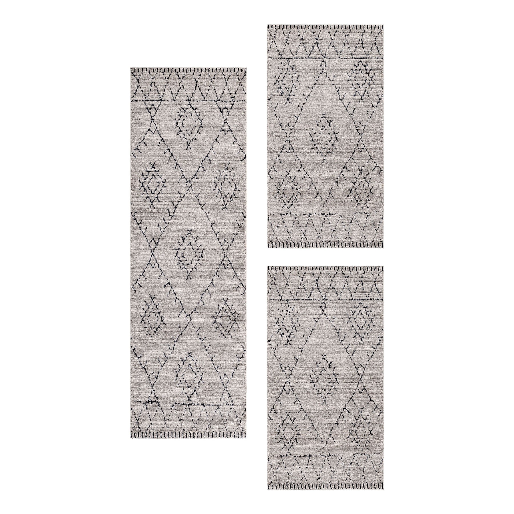 Teppich Läufer Set FES Schlafzimmer Kurzflor Bettumrandung 3 Teile