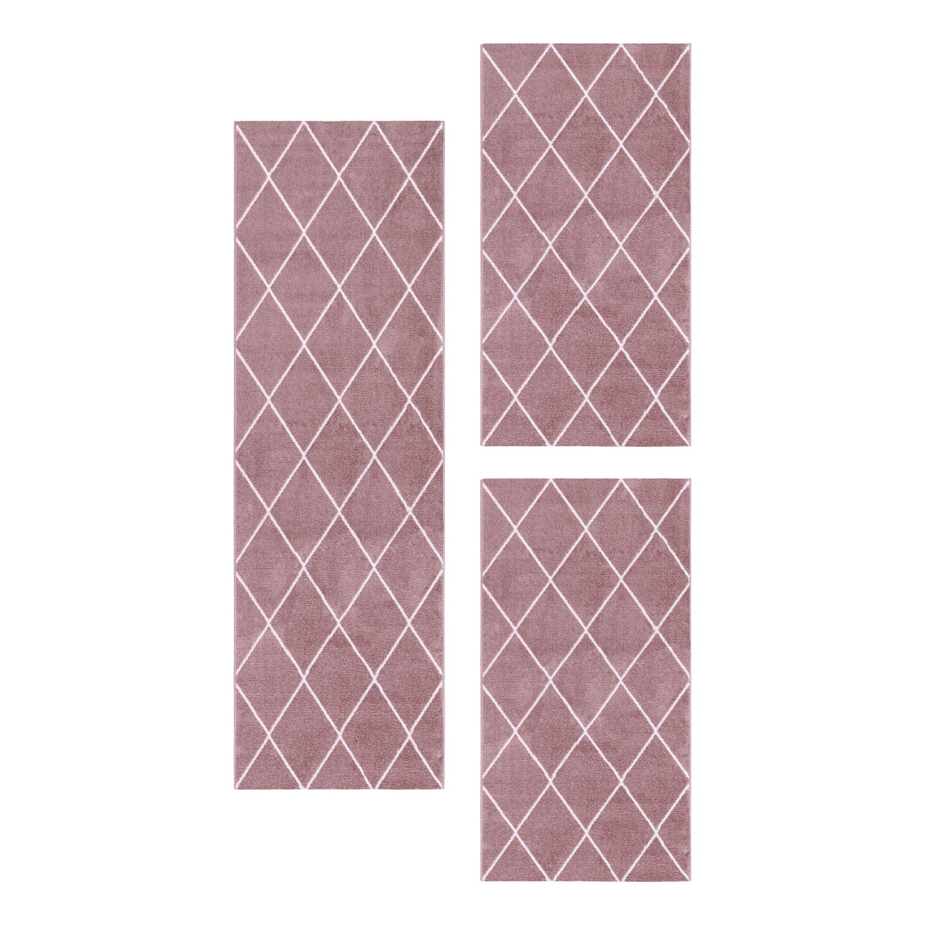 Teppich Läufer Set IROH Schlafzimmer Kurzflor Bettumrandung 3 Teile