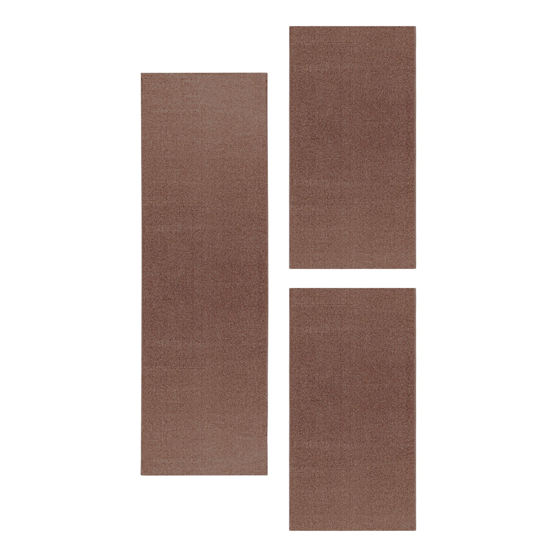 Teppich Läufer Set IROH Schlafzimmer Kurzflor Bettumrandung 3 Teile Einfarbig
