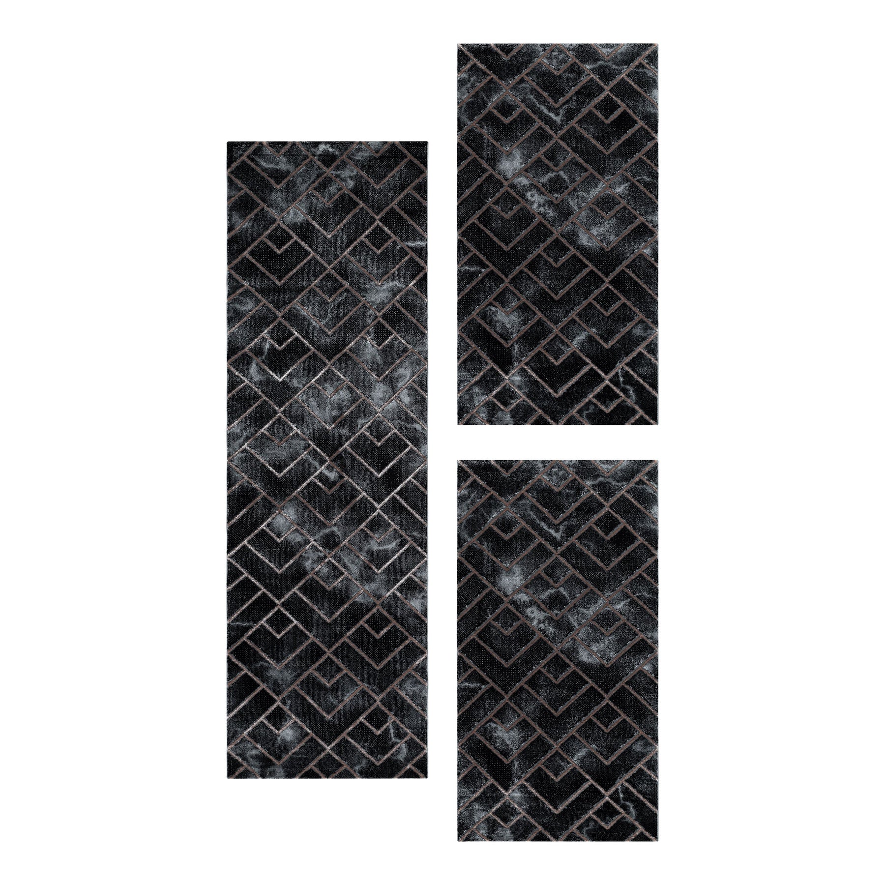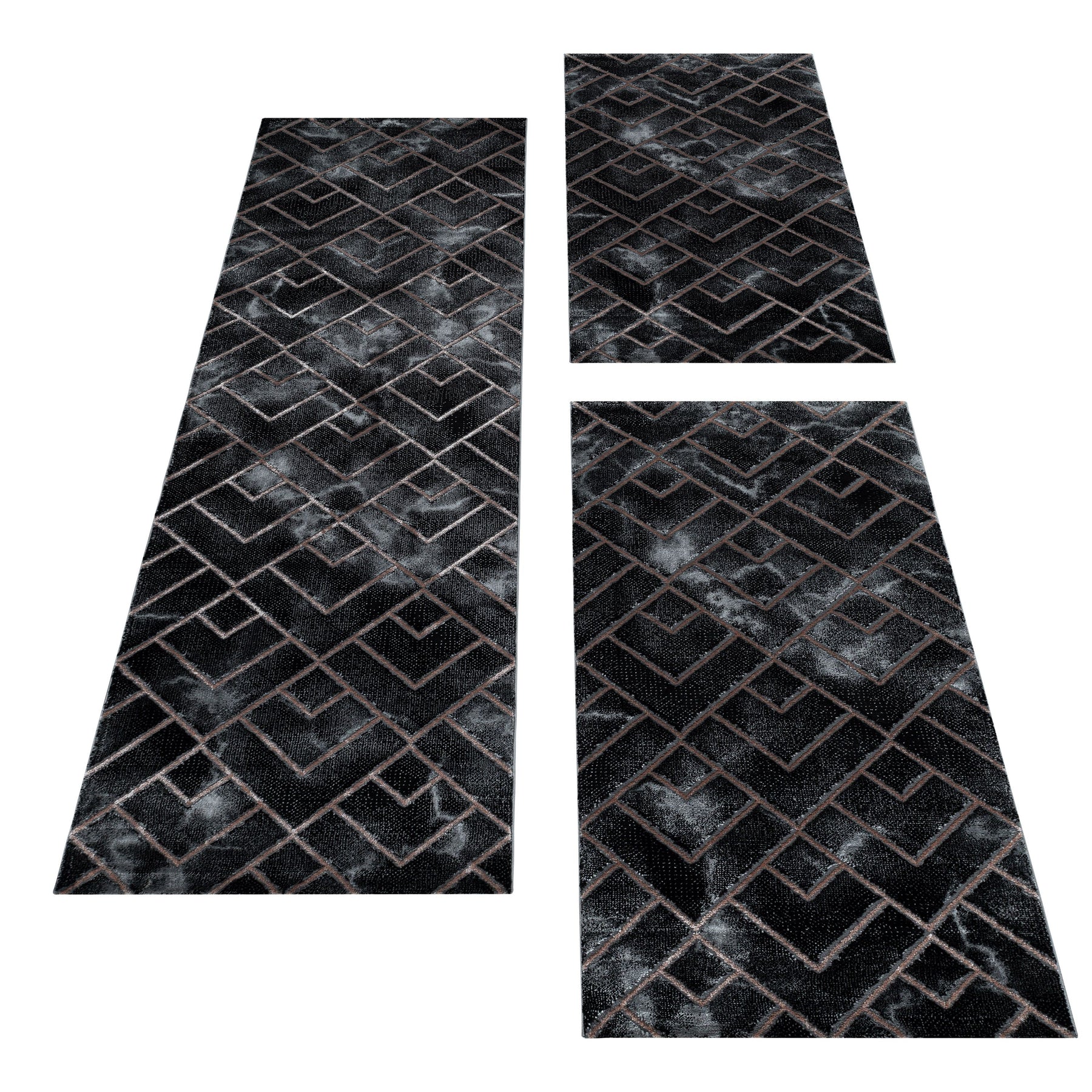 Teppich Läufer Set OXIA Schlafzimmer Kurzflor Bettumrandung 3 Teile
