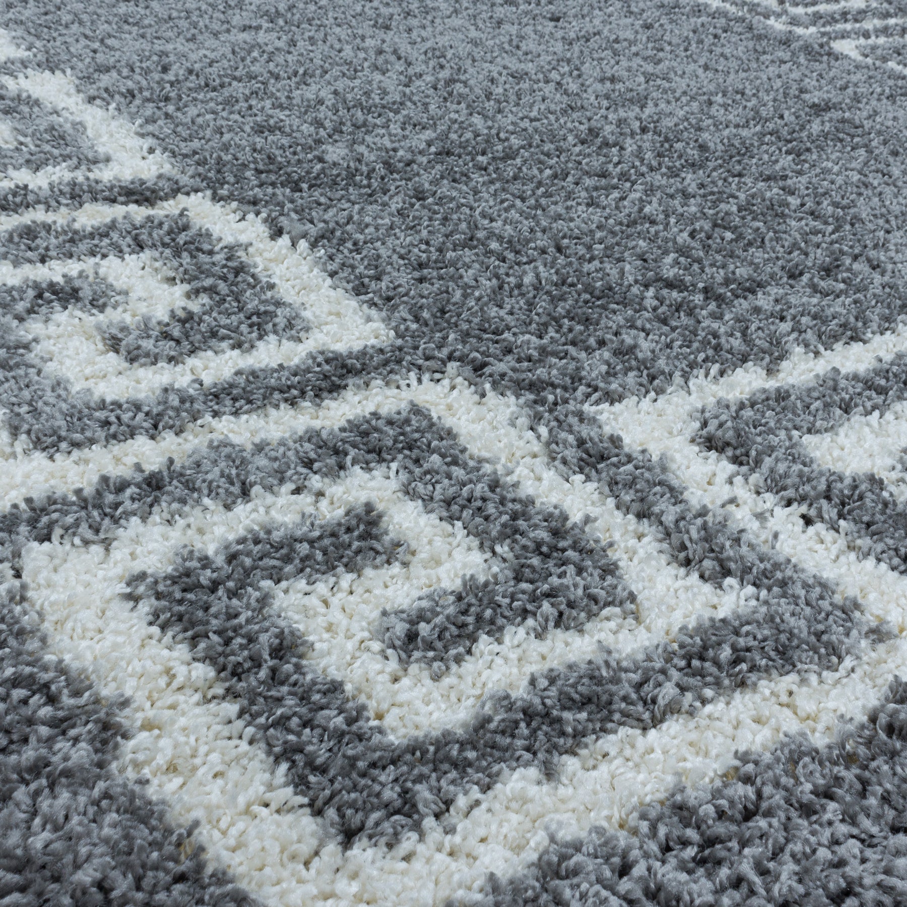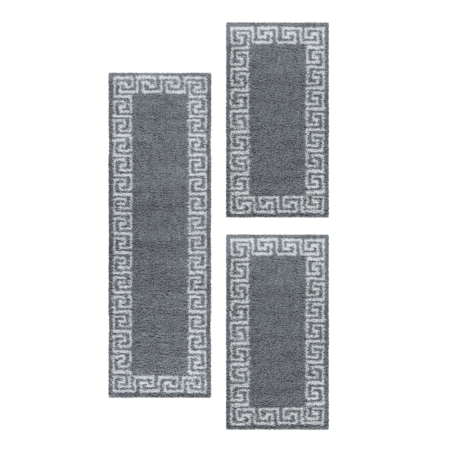 Teppich Läufer Set Schlafzimmer Hochflor Shaggy Bettumrandung Muster Antik Grau