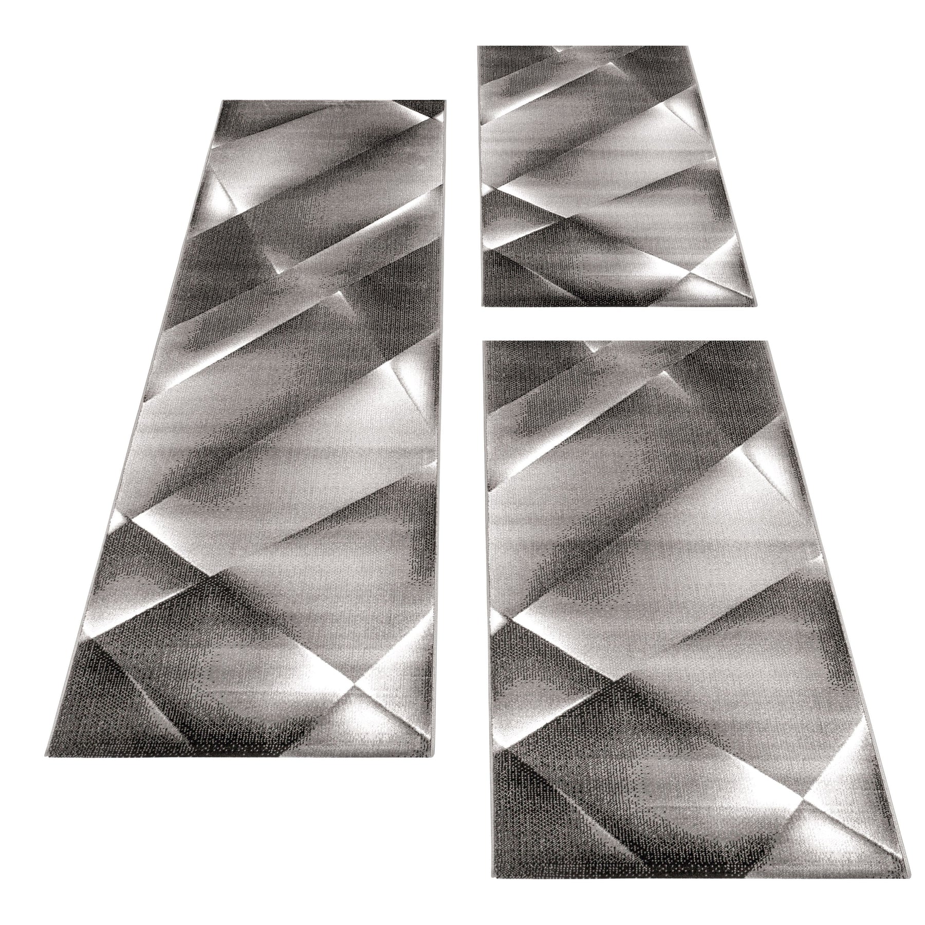Teppich Läufer Set Schlafzimmer Kurzflor Bettumrandung Design Abstrakt Braun