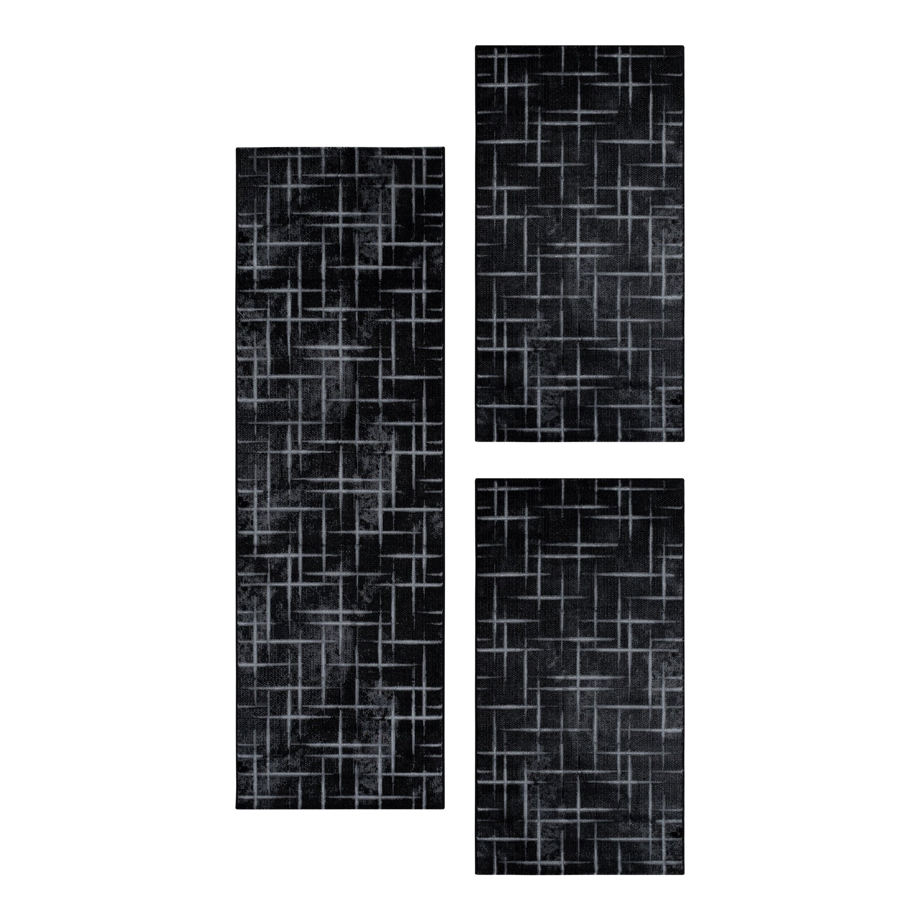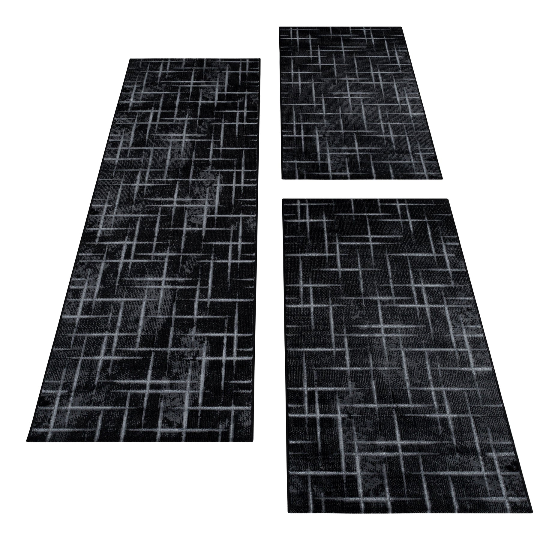 Teppich Läufer Set Schlafzimmer Kurzflor Bettumrandung Gitter Design S