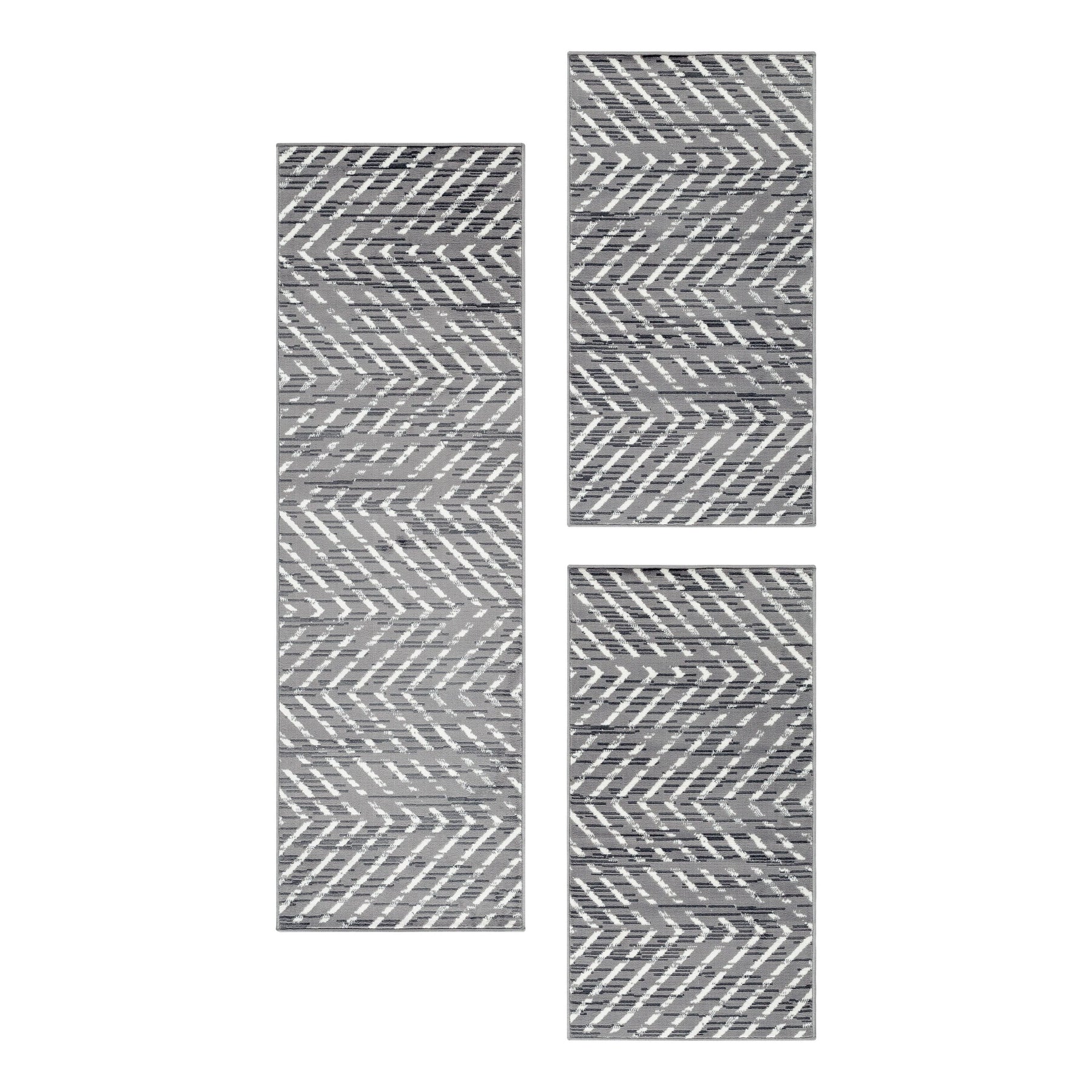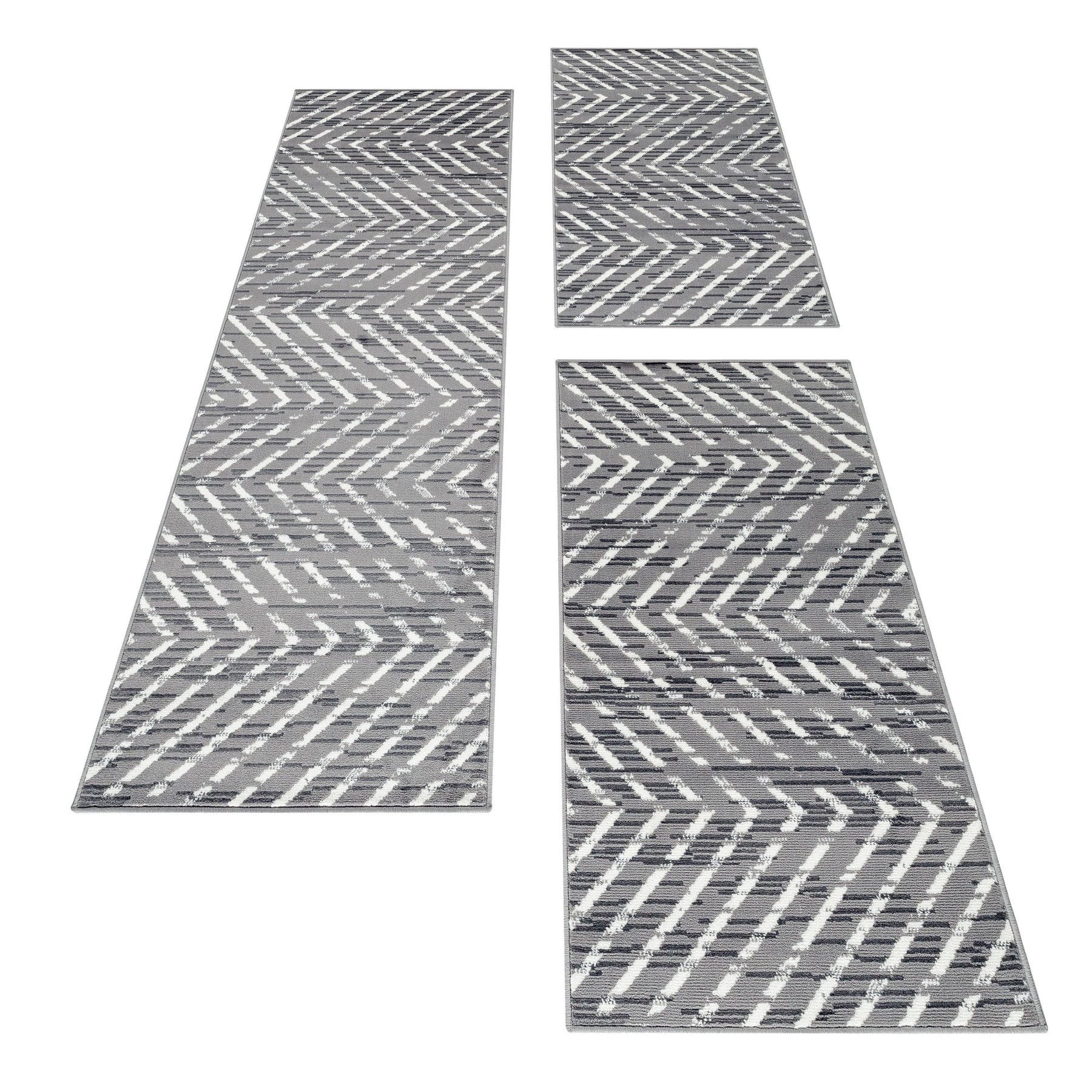 Teppich Läufer Set Schlafzimmer Kurzflor Weich Bettumrandung 3 Teile Grau