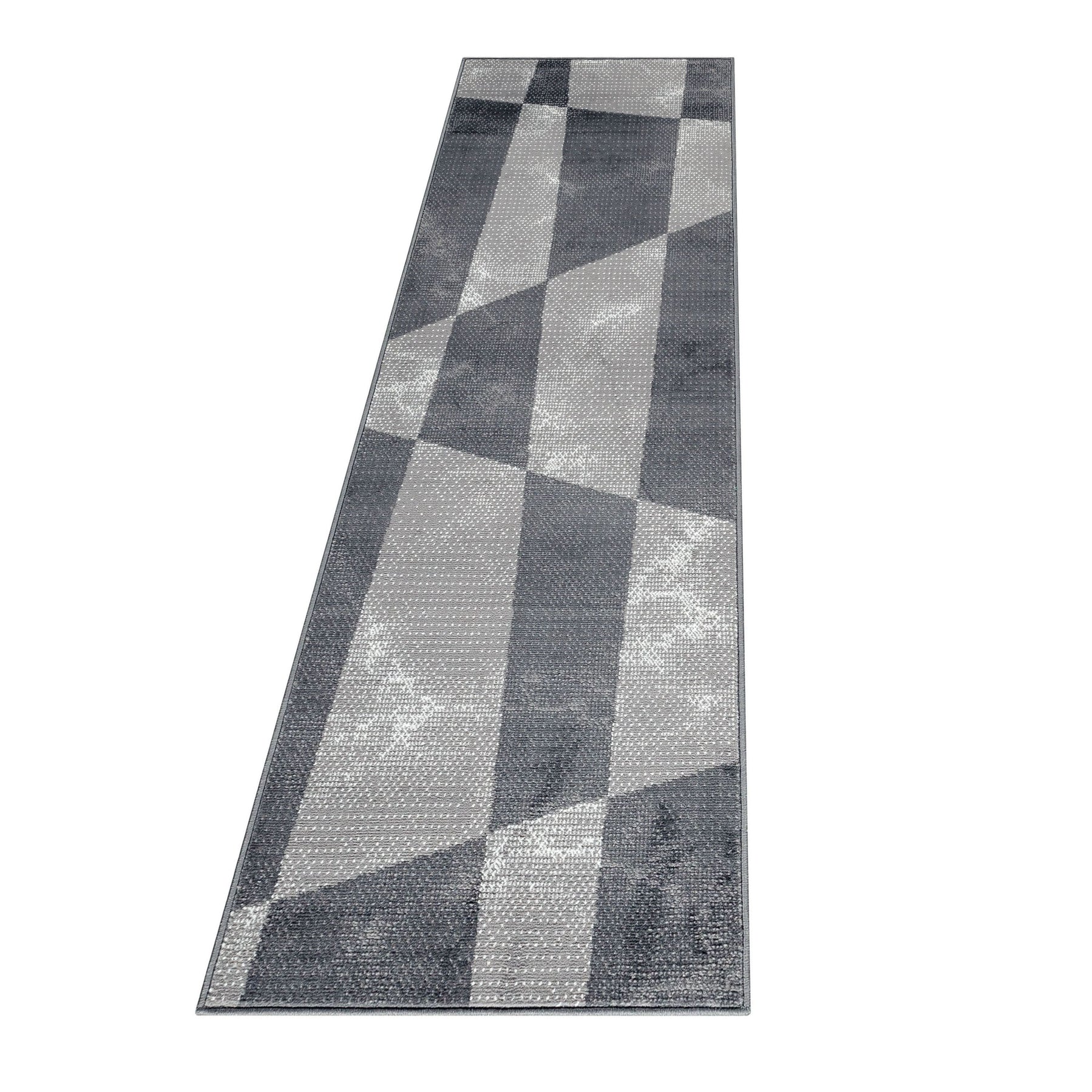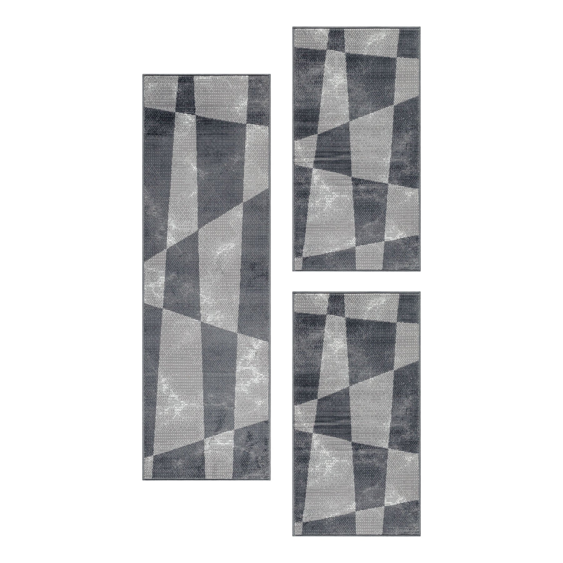 Teppich Läufer Set Schlafzimmer Kurzflor Weich Bettumrandung Grau Geometrisch