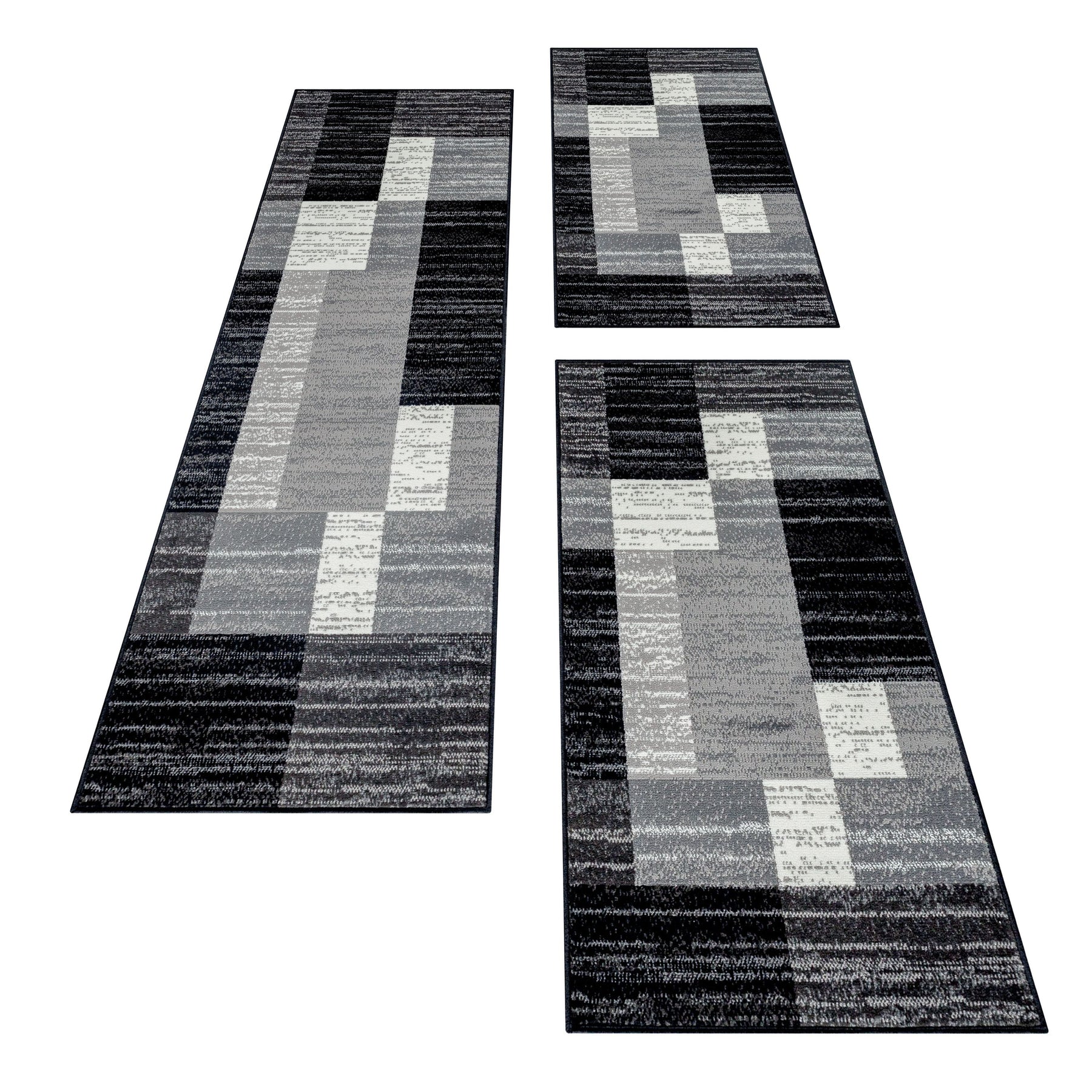 Teppich Läufer Set Schlafzimmer Kurzflor Weich Bettumrandung Grau Must