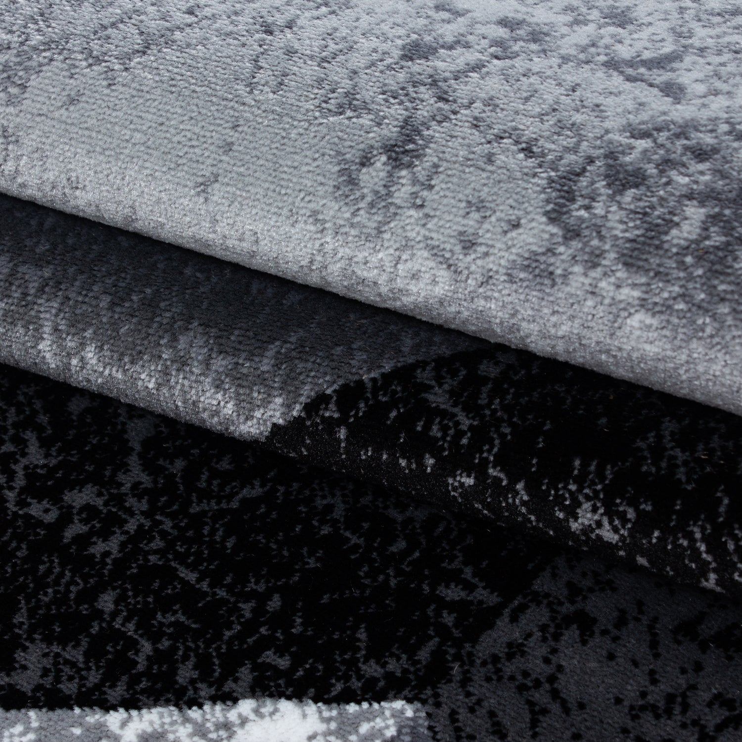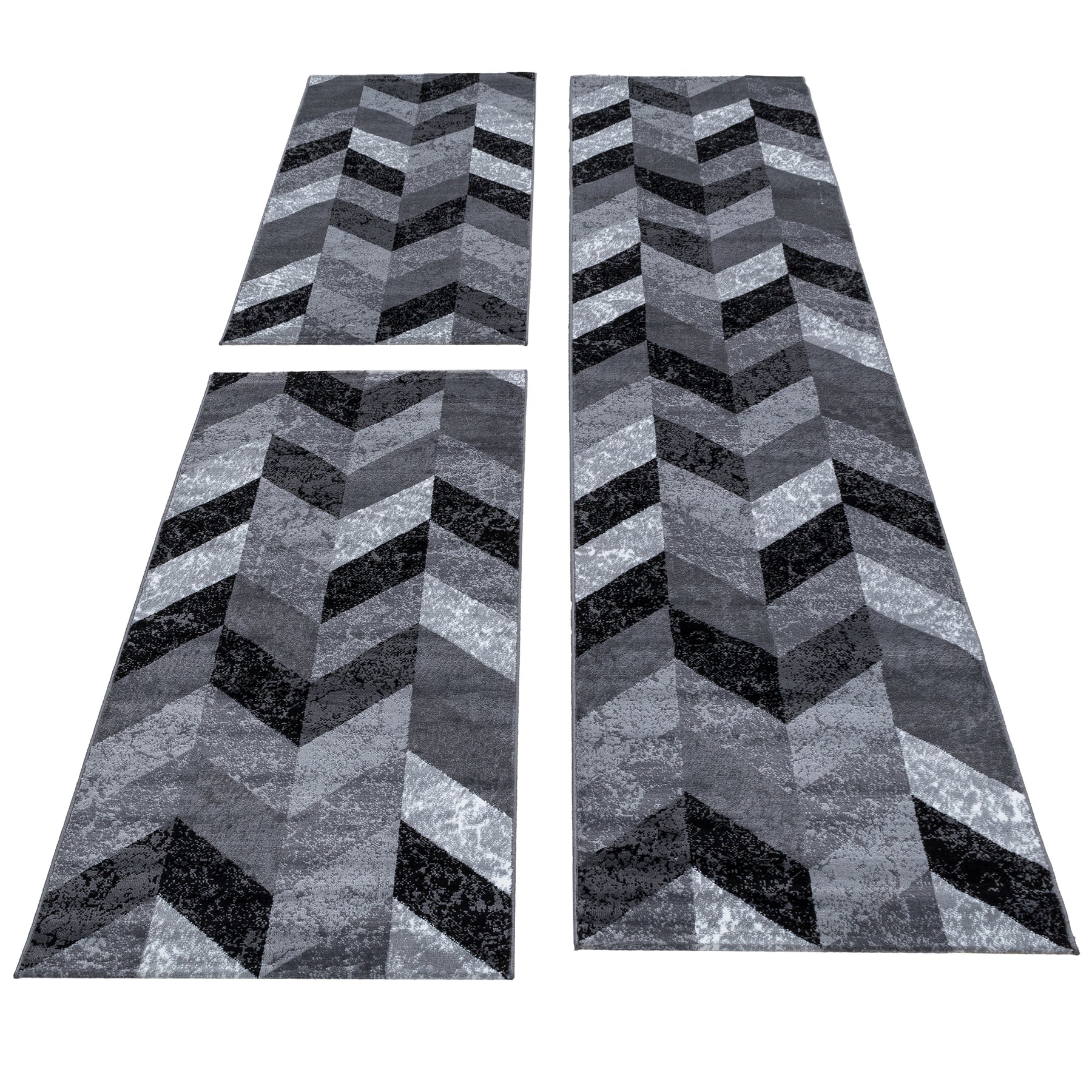 Bettumrandung Läufer Teppich Kurzflor Geometrisches Design Läuferset 3 teilig Schlafzimmer Flur Meliert Schwarz Grau Weiß