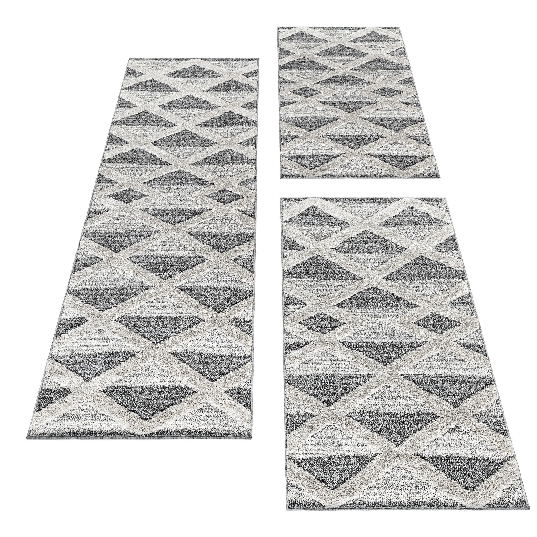 Teppich Läufer Set PIA Schlafzimmer Kurzflor Bettumrandung 3 Teile Kreuz Muster