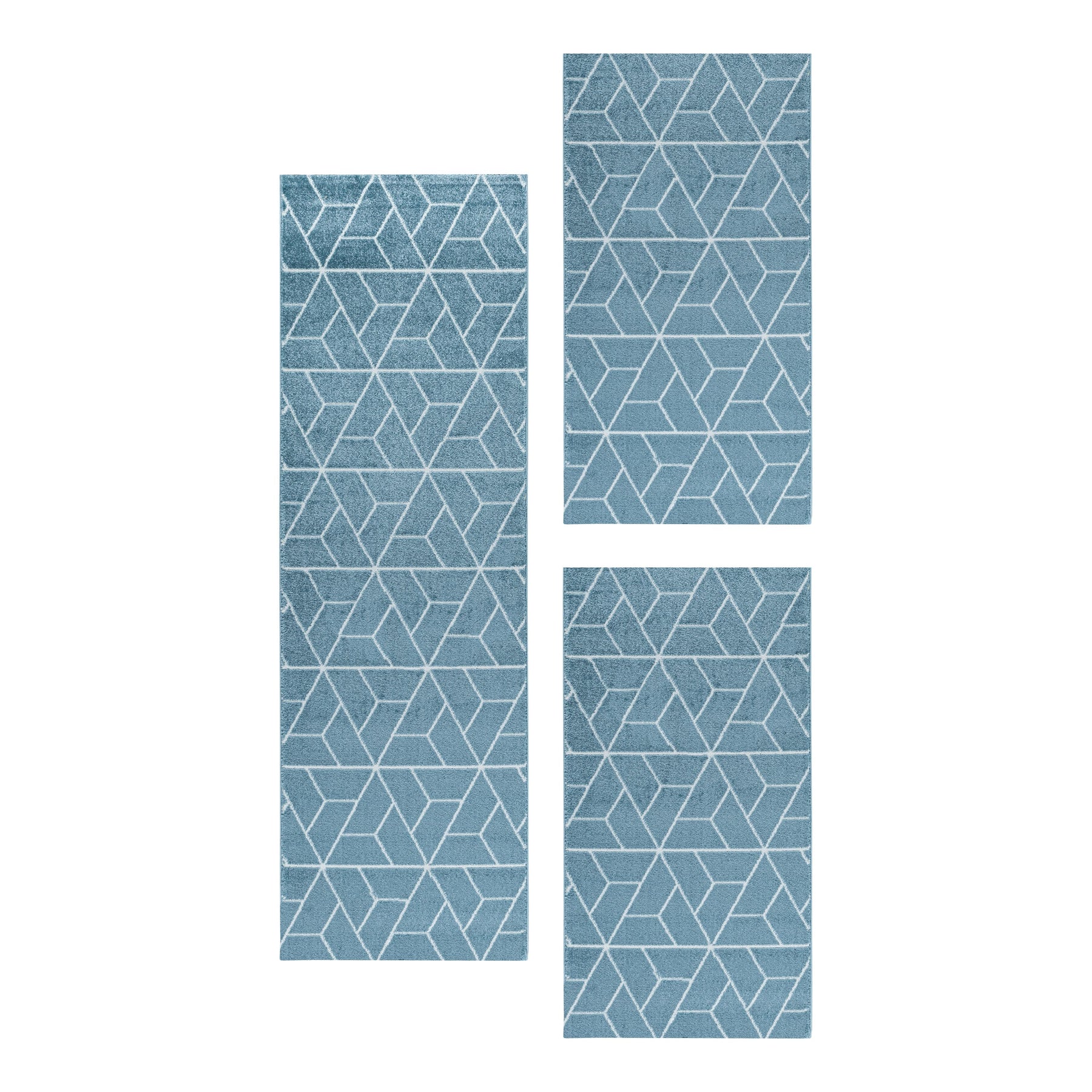 Teppich Läufer Set POWER Schlafzimmer Kurzflor Bettumrandung 3 Teile Geometrisch