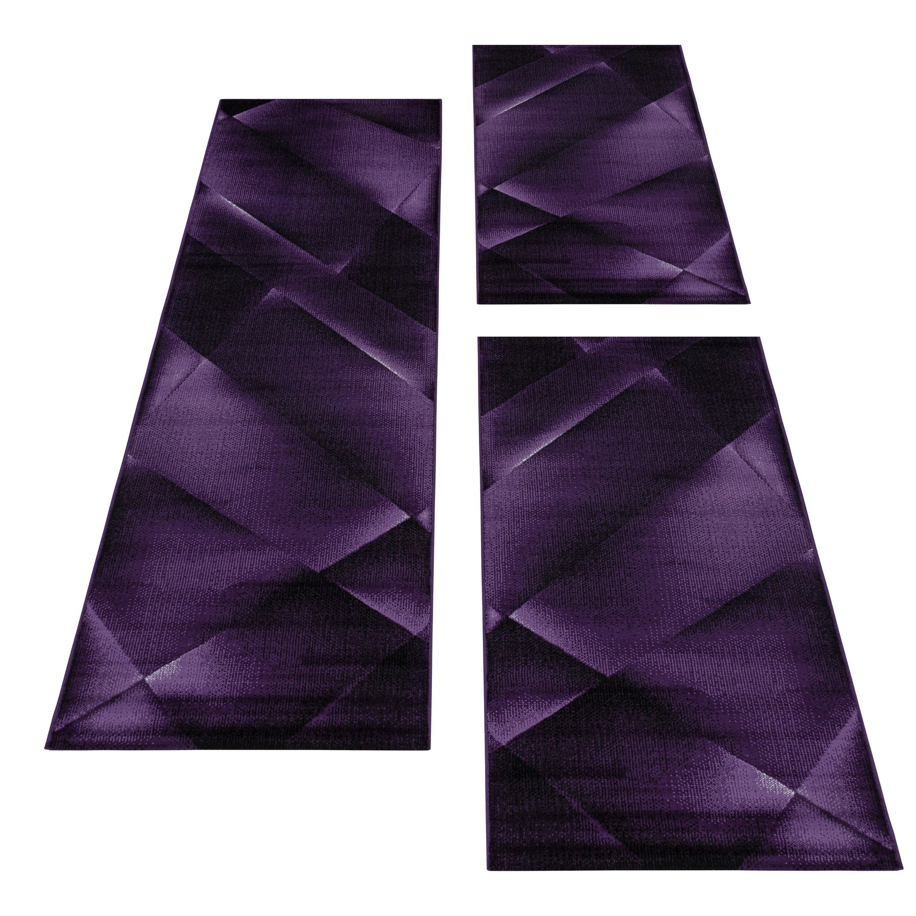 Stylische Kurzflor Teppich Läufer für das Schlafzimmer mit weichem Flor und modernem abstraktem Design. Abstrakte Schatten Muster werden immer attraktiver. Teppichfarbe mehrfarbig Lila. Dieser relativ flache Teppichläufer eignet sich aufgrund seines geschlungenen Flor optimal für die Nutzung von Saugrobotern aller Art. Der Flor ist robust verarbeitet und sehr pflegeleicht. Die Teppiche sind leicht meliert und können auch als Flachflorteppiche im Heimbüro oder im Flur als Läufer genutzt werden. Für das Schlafzimmer als Teppich Bettumrandung um das Bett herum oder im Kinderzimmer als Teppichvorleger. Die Nutzung ist vielseitig, da auch Fußbodenheizung geeignet. Flachflorteppiche und flache Teppich-Läufer passen auch super in den Wintergarten. Bei Nutzung vor Feuchtigkeit und direkter Sonneneinstrahlung schützen. Bitte klopfen Sie Teppiche regelmäßig aus.