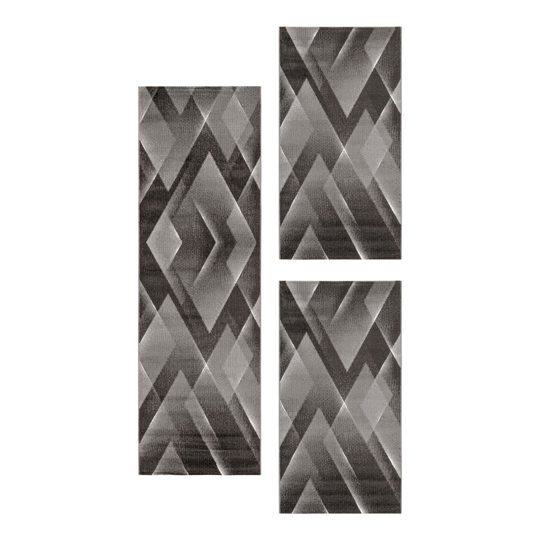 Teppich Läufer Set Schlafzimmer Kurzflor Weich Bettumrandung 3-D Motiv Braun