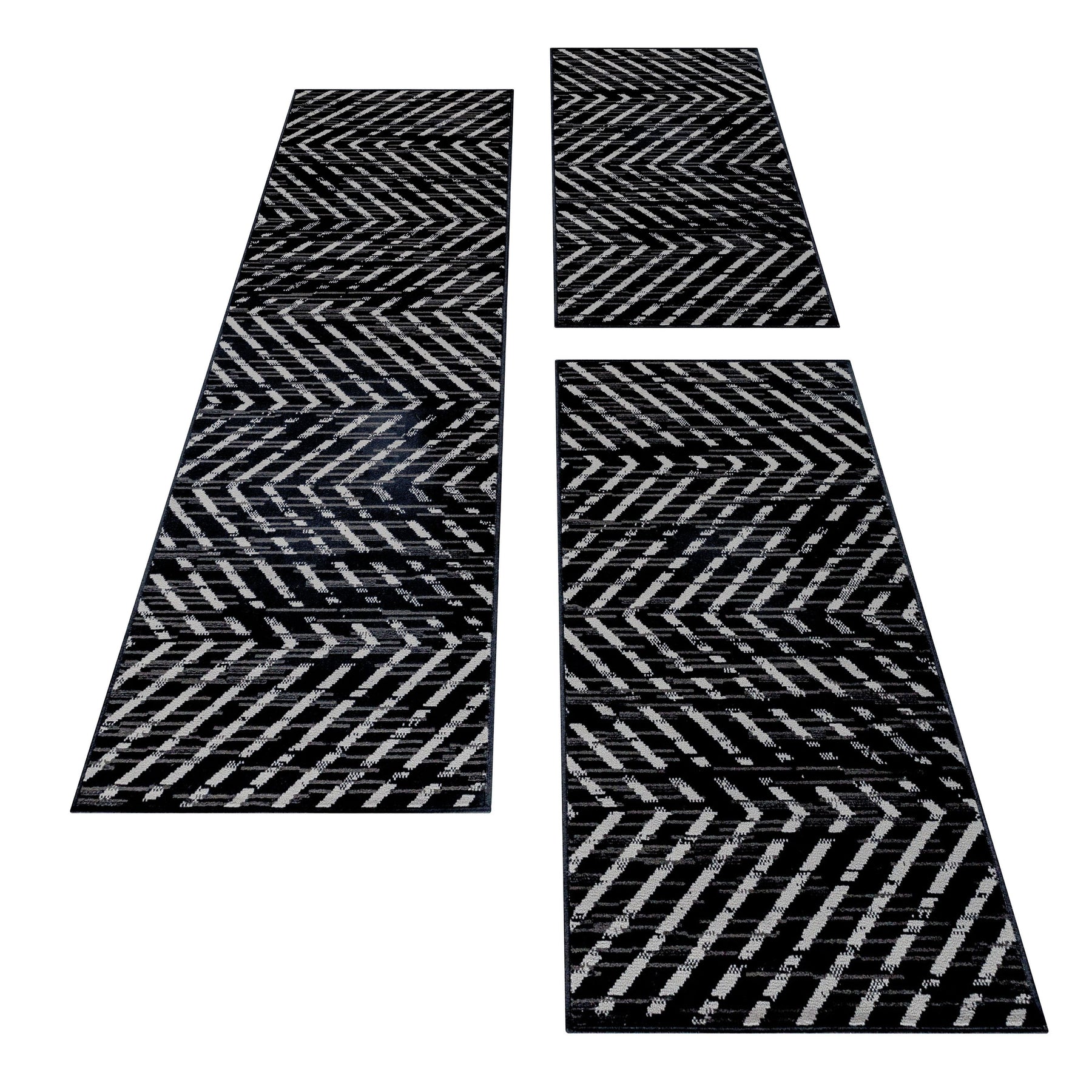 Teppich Läufer Set Schlafzimmer Kurzflor Weich Bettumrandung 3 Teile Schwarz