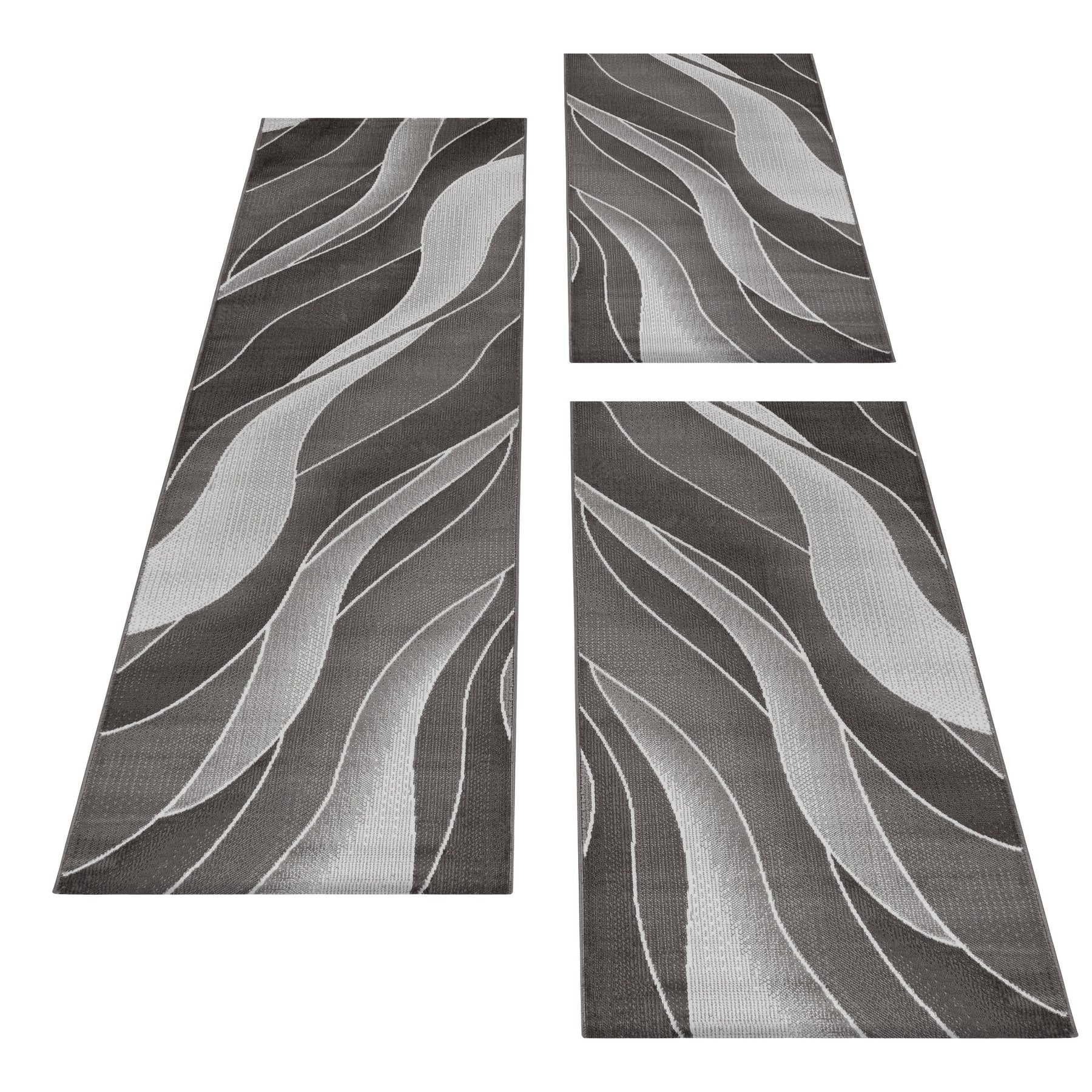 Teppich Läufer Set Schlafzimmer Kurzflor Weich Bettumrandung Wellen Motiv Braun