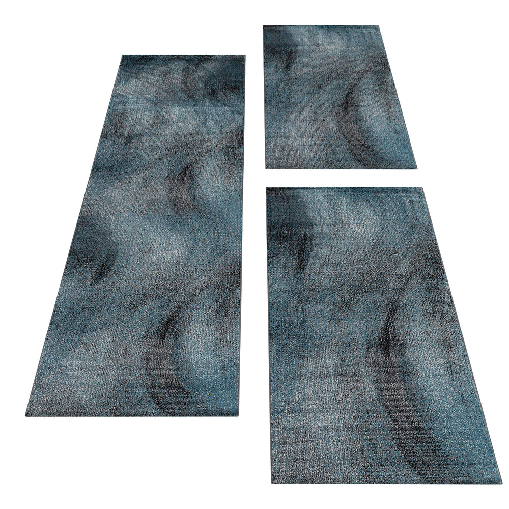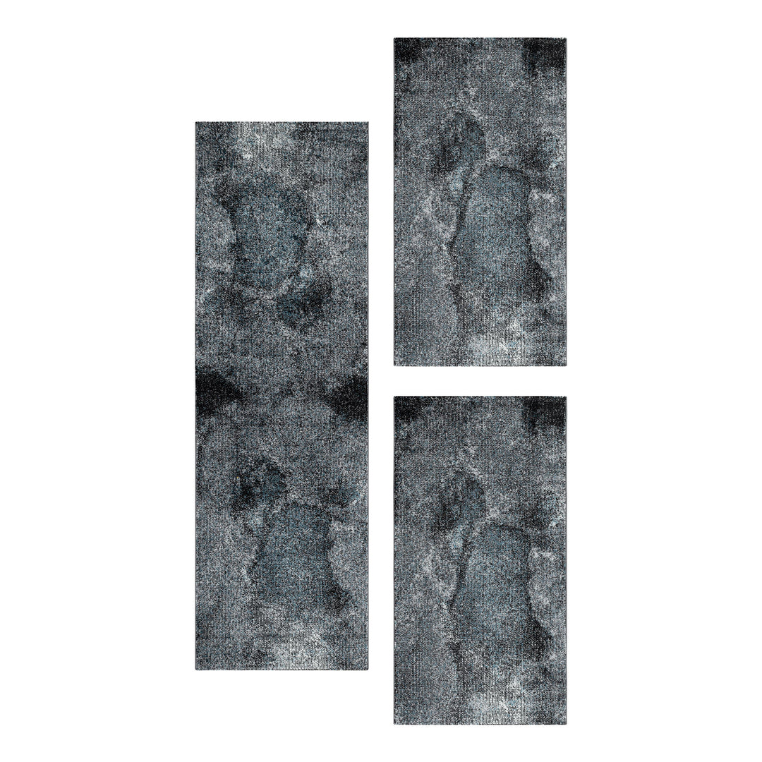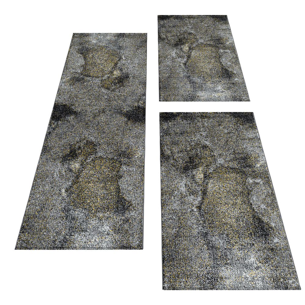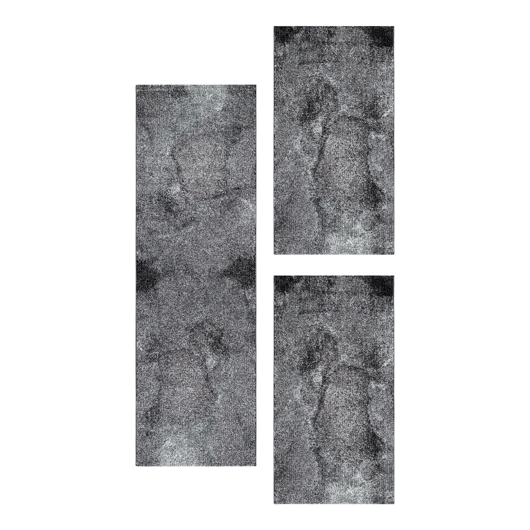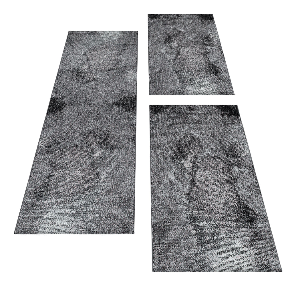 Teppich Läufer Set TARIO Schlafzimmer Kurzflor Bettumrandung 3 Teile Marmoriert