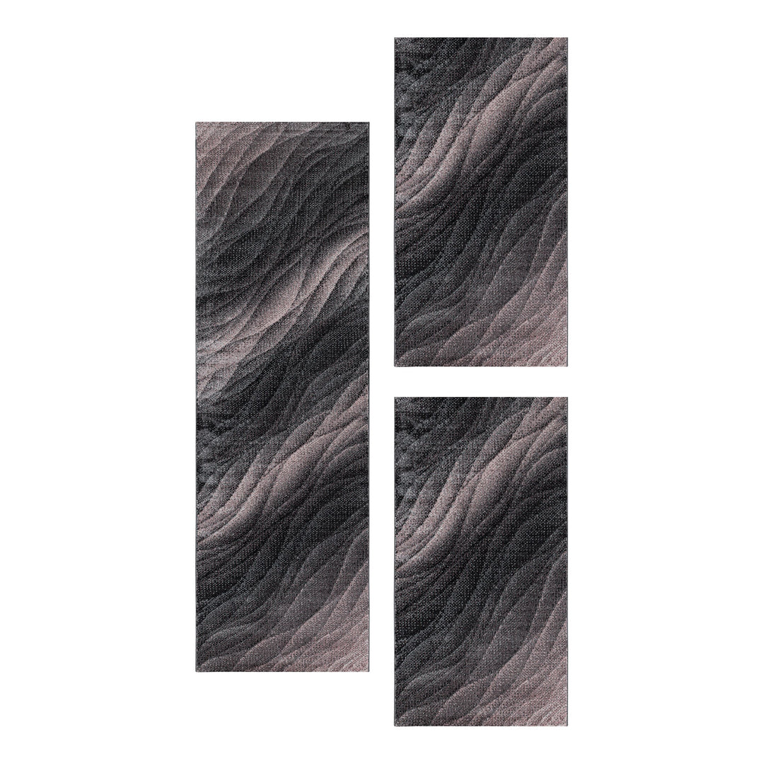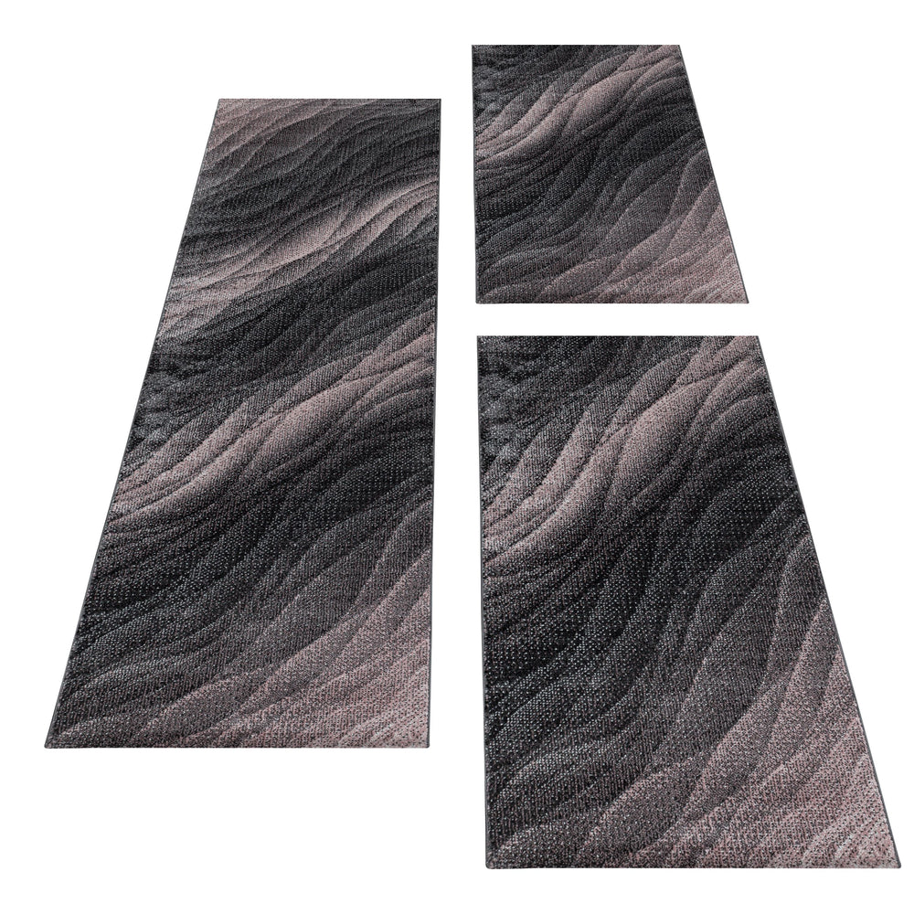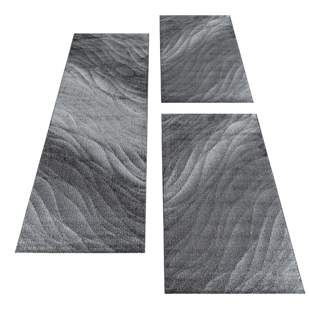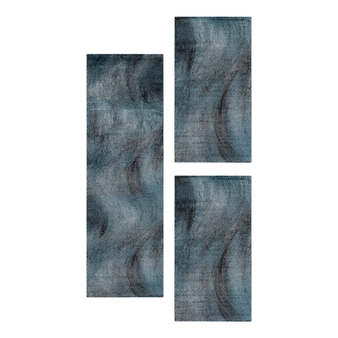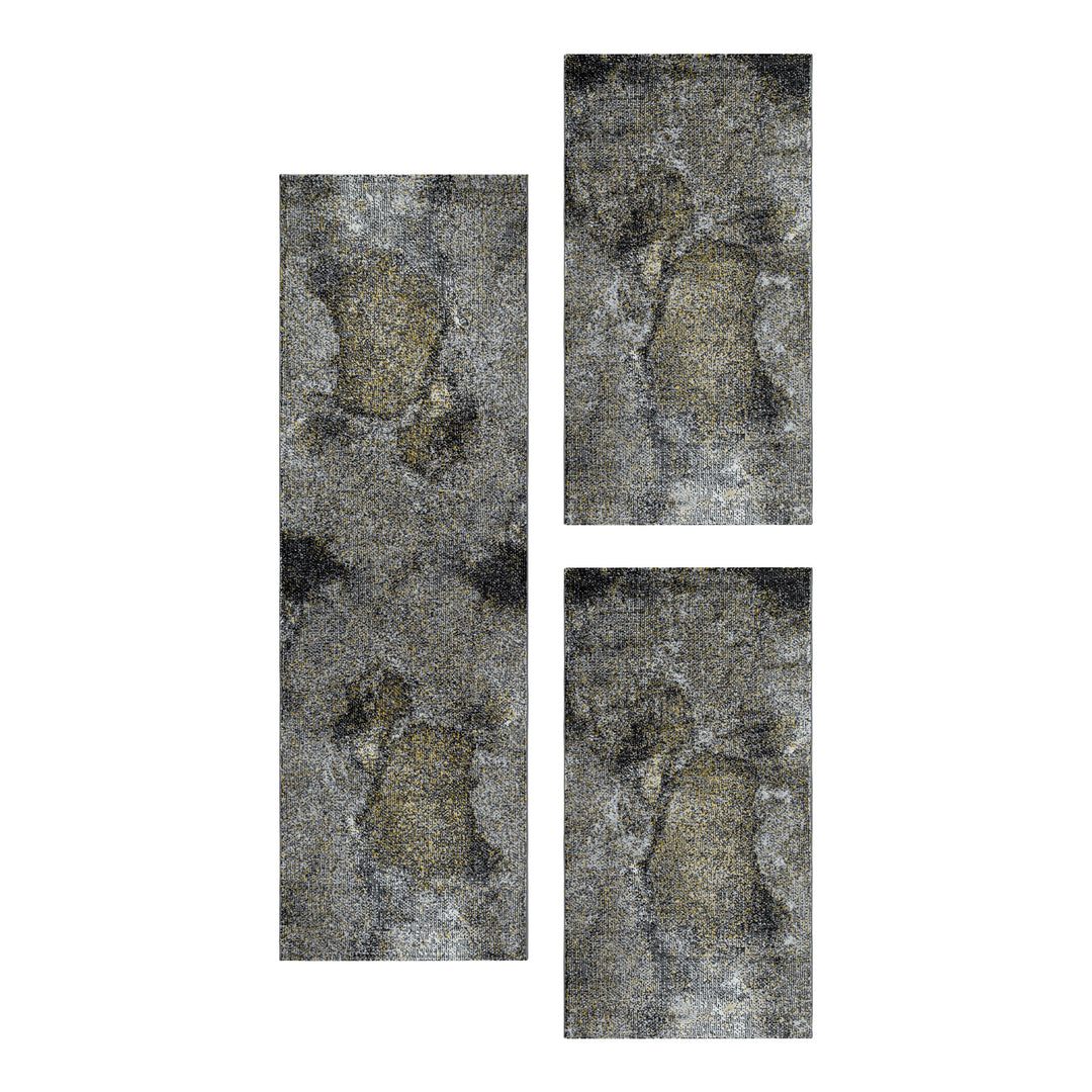 Teppich Läufer Set TARIO Schlafzimmer Kurzflor Bettumrandung 3 Teile Marmoriert