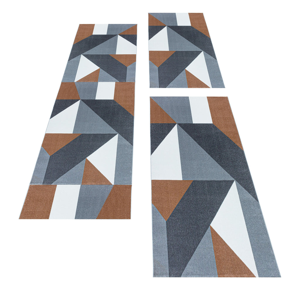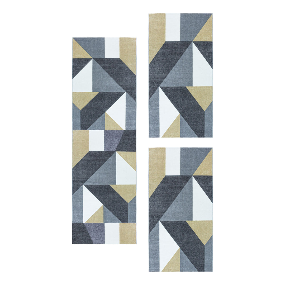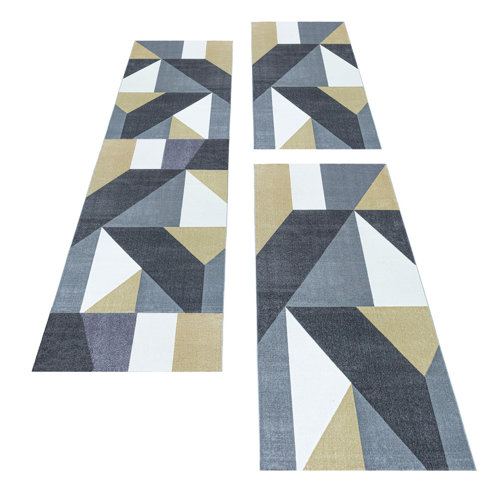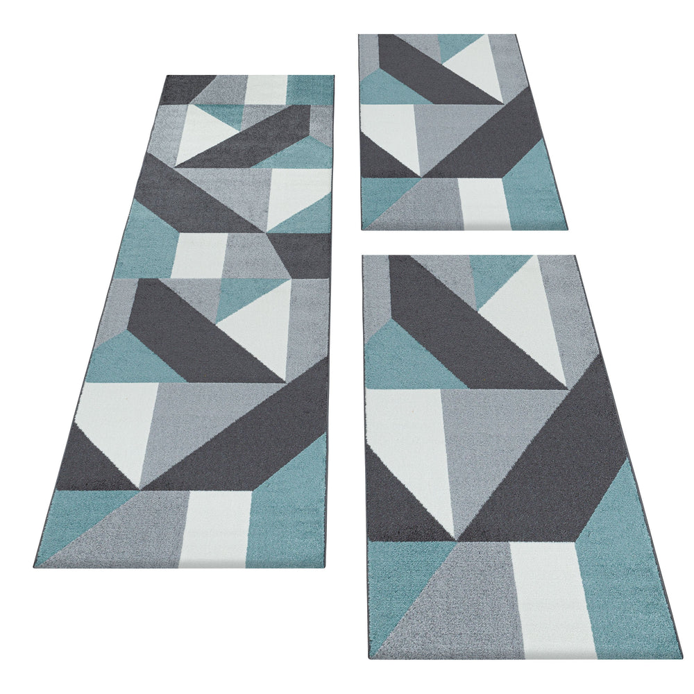 Teppich Läufer Set TARIO Schlafzimmer Kurzflor Bettumrandung 3 Teile