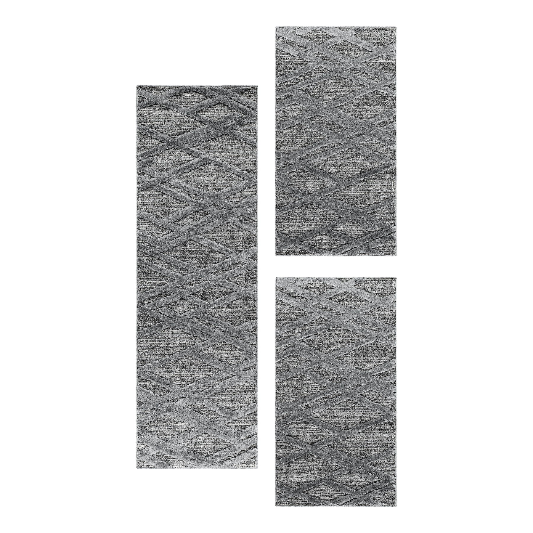 Teppich Läufer Set PIA Schlafzimmer Kurzflor Bettumrandung 3 Teile Wel
