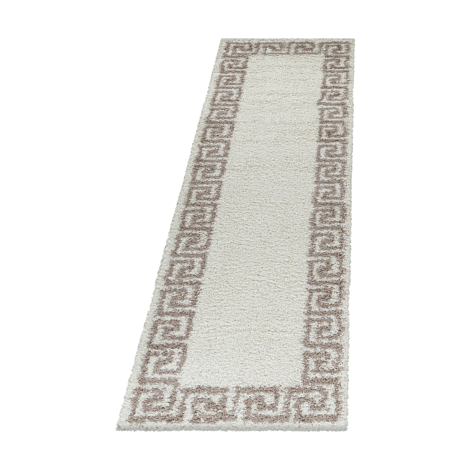 Teppich Läufer Set Schlafzimmer Hochflor Shaggy Bettumrandung Muster Antik Beige