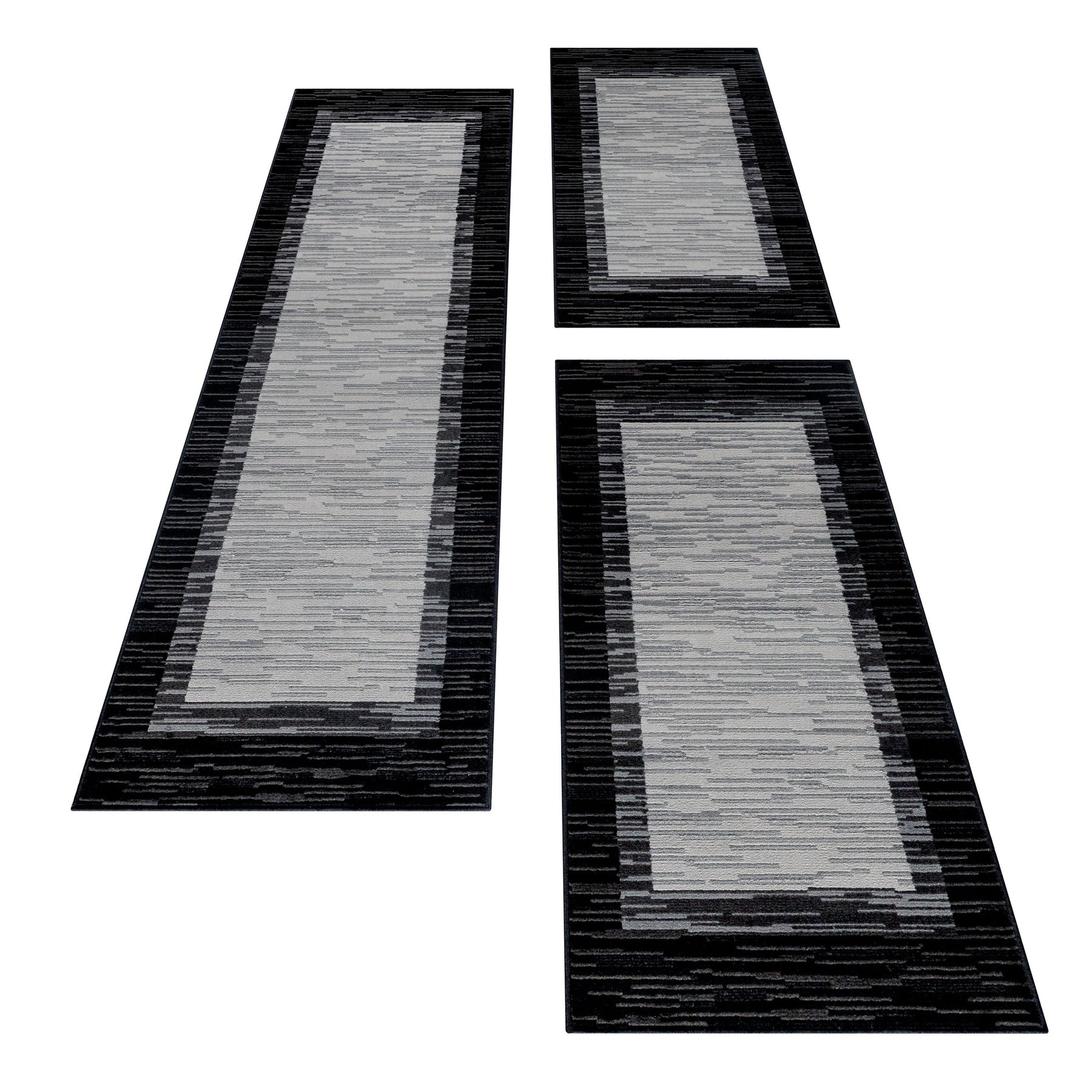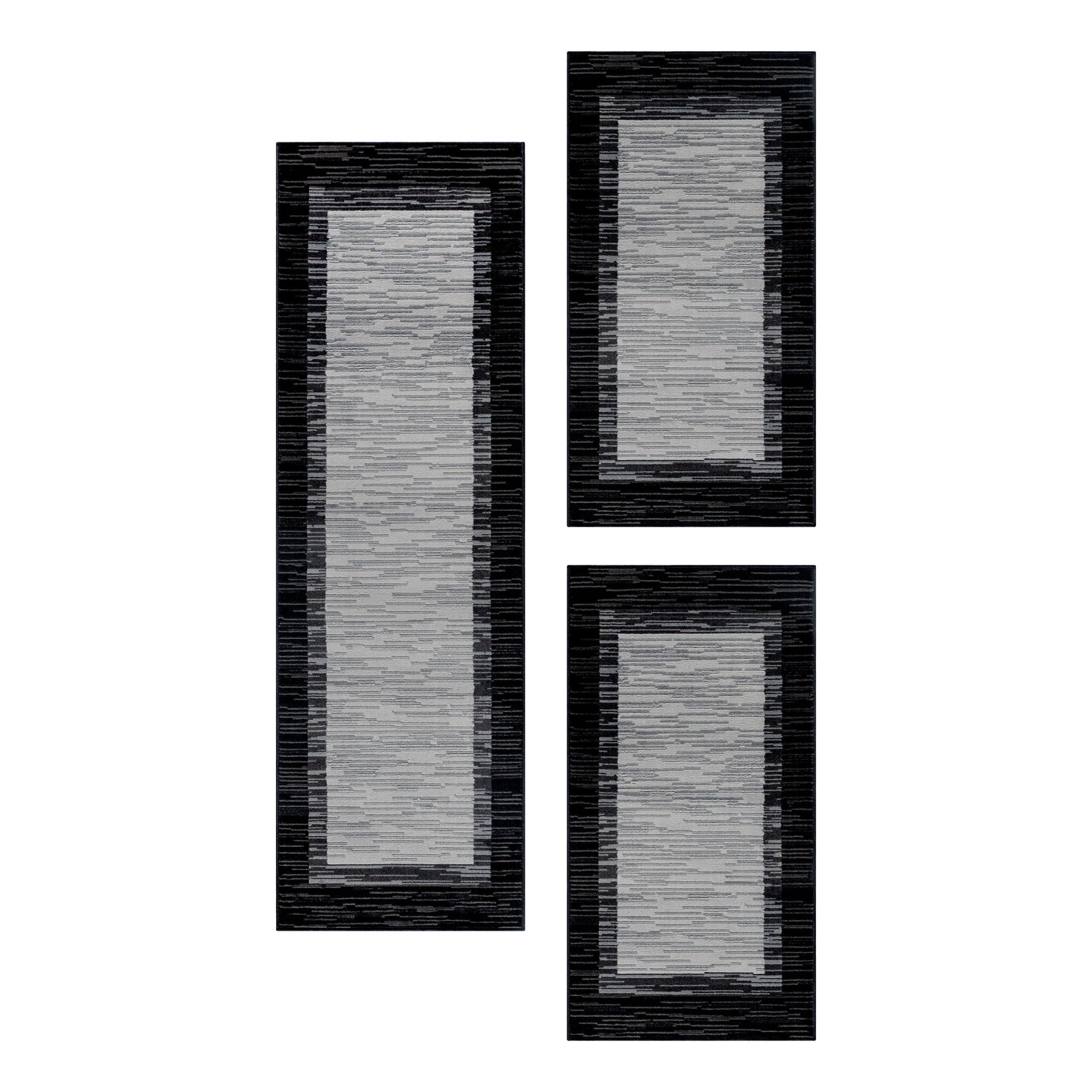Teppich Läufer Set Schlafzimmer Kurzflor Weich Bettumrandung Schwarz B